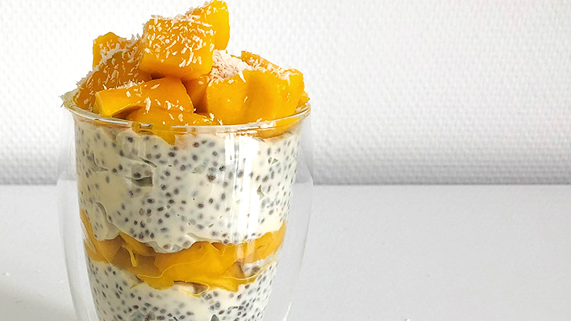 Mango-Chiapudding Licht, puur en voedzaam Deze mango-chiapudding is licht, puur en voedzaam. Rijk aan eiwitten (21 gram per portie) en van…